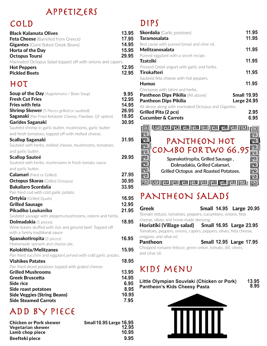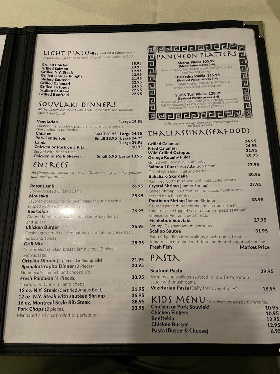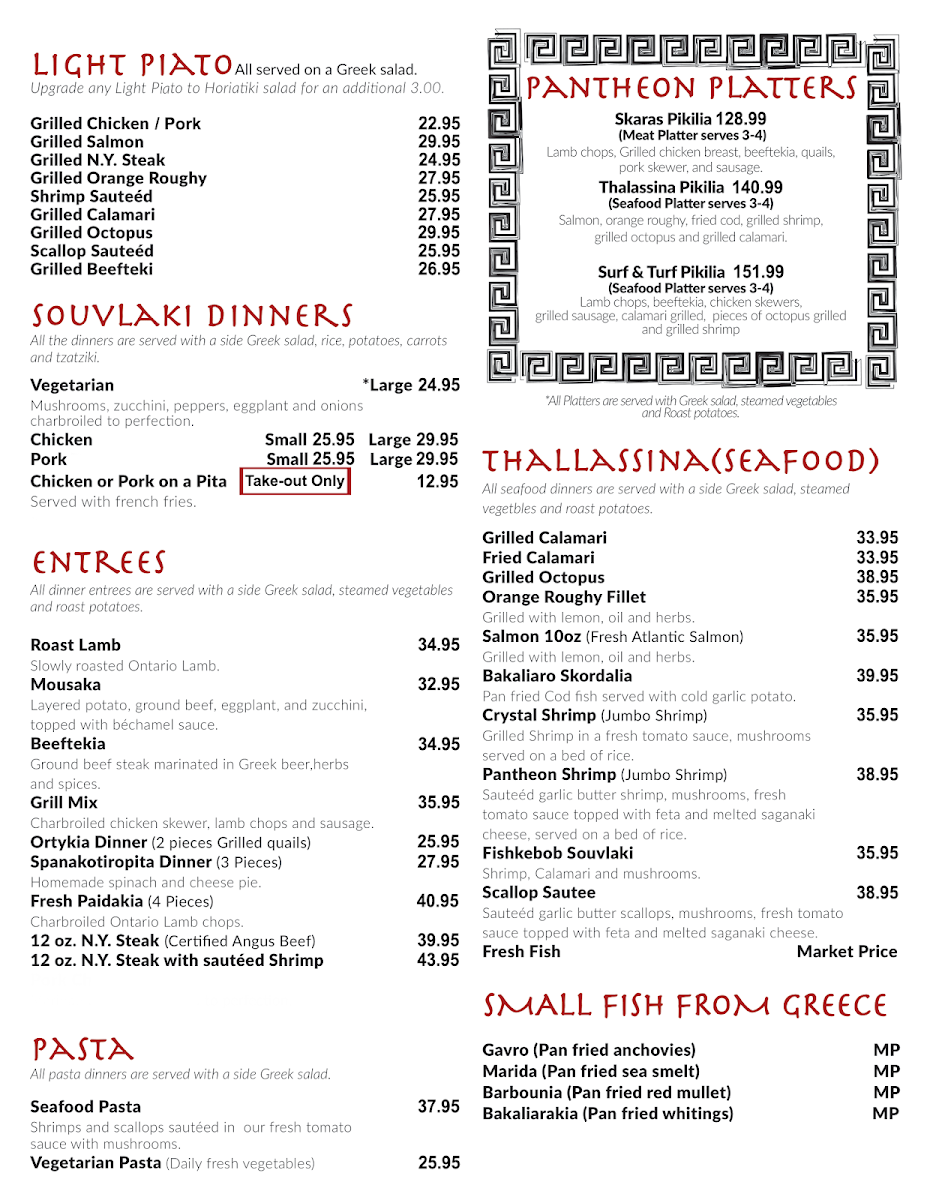 Welcome to Pantheon Restaurant, a culinary gem nestled on Danforth Avenue in Toronto. This vibrant eatery offers a menu that delights the senses, with standout dishes such as perfectly grilled calamari and a striking hot plate for two, featuring grilled octopus and spanakopita. Each plate not only bursts with flavor but is crafted with care, reflecting the skill of the kitchen team.